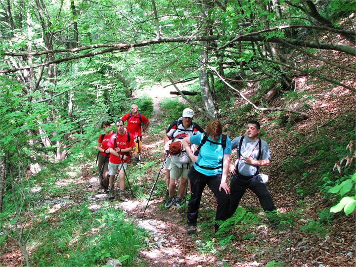 Začetek poti do Vrbice je bil prijeten, nenaporen in zaradi zgodnejših ur tudi manj soparen. Na poti smo si ogledali votli kamen, prvi krajši postanek pa smo naredili v Vrbici ob sotočju Iške in Zale. Pot se je začela nato malo bolj strmo vzpenjati proti Krvavi Peči. Med hojo smo občudovali izjemno lepo ohranjeno naravno okolje, slikovite stene, strma prepadna pobočja s prepletom alpske in dinarske vegetacije in poslušali žuborenje vode Iške. Kmalu smo ugotovili, da je območje »bogato« tudi s klopi.
