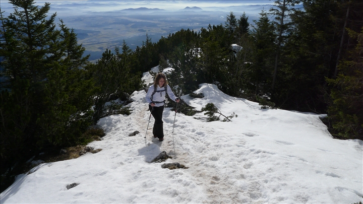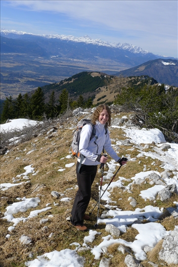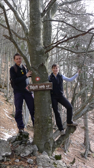 S parkirišča smo se podali proti vzhodu v središče vasi, od tam pa po desni strani proti Tolstemu vrhu. Odločitev, da se najprej povzpnemo na Tolsti vrh in se nato spustimo čez Kriško goro, je bila pravilna. Pot je bila vseskozi dobro označena z markacijami in opisi. Večino časa smo hodili po gozdu, vmes pa je bil kakšen predel bolj odprt in je ponujal čudovite razglede po Ljubljanski kotlini, proti Škofjeloškemu hribovju in Julijskim Alpam, pa vse do 'domačega' Krima. Naš tempo hoje je bil zmeren, smo se pa vmes kar nekajkrat ustavili, da smo se razgledali po naravi, se slikali ali preizkusili naše plezalne sposobnosti na kateremu od bližnjih dreves. Proti vrhu gozd preide v grmovje, ostalo pa je tudi še nekaj snega, vendar nas pri hoji ni oviral.